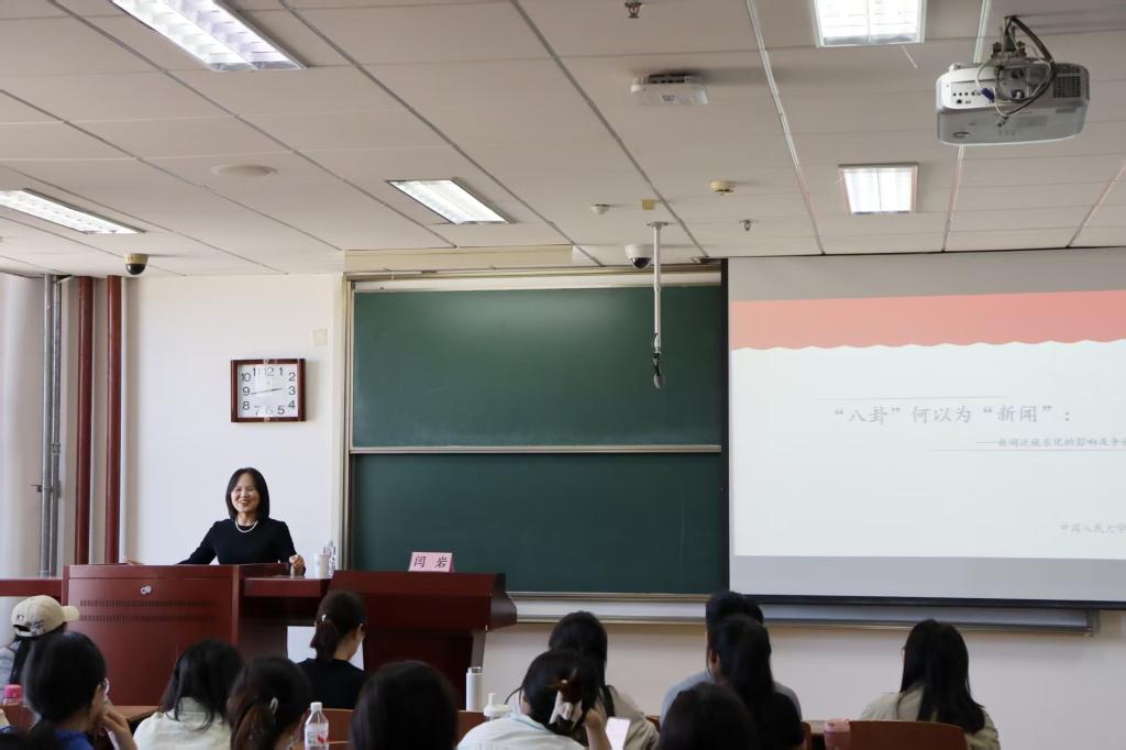 2025年9月17日下午,中国人民大学新闻学院闫岩教授莅临我院,于卓越楼303教室作题为《“八卦”何以为“新闻”:新闻娱乐化的影响及争论》的学术讲座,本次讲座由新闻系主任邢渊渊主持,学院硕士研究生踊跃参与。