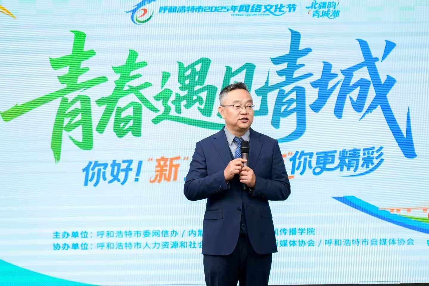 10月16日,由呼和浩特市委网信办、bv伟德国际1946联合主办,呼和浩特市人力资源和社会保障局、内蒙古新媒体协会、呼和浩特市自媒体协会共同协办的呼和浩特市2025年网络文化节主体活动 “青春遇见青城——你好!‘新’上人 ‘友’你更精彩” 青年友好城市网络系列活动在我院演播大厅活力启航。