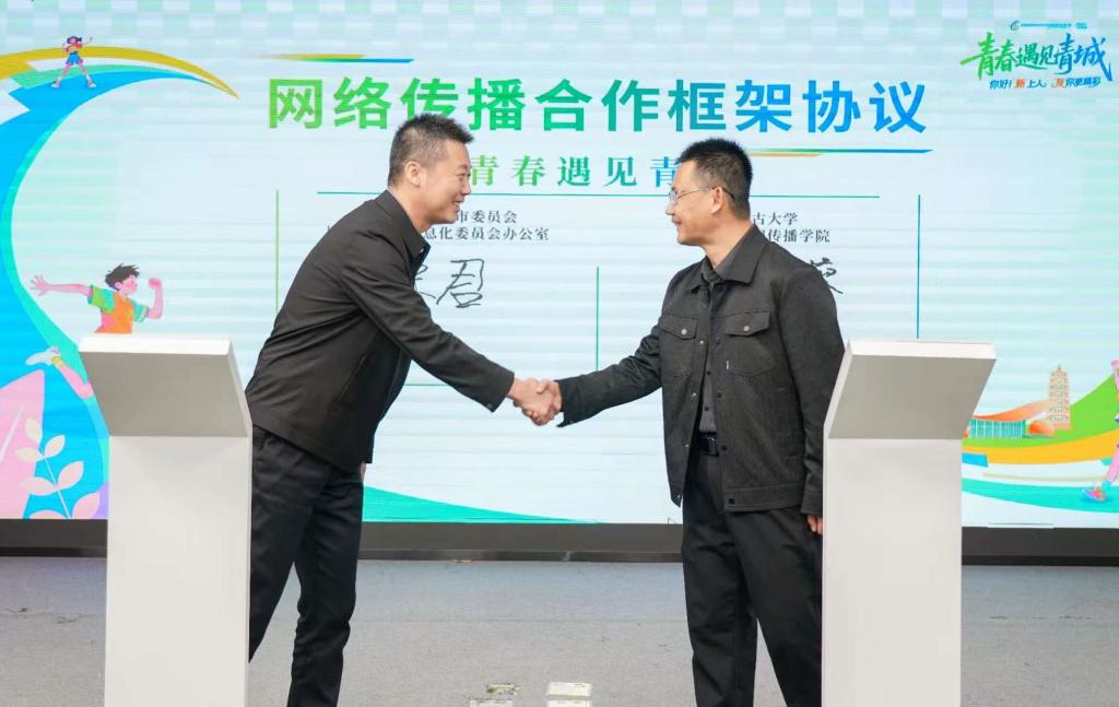 “青春遇见青城”这是一个充满诗意与想象的主题。它描绘的是一场青春活力与城市底蕴的双向奔赴,一次青年学子与北疆名城的美好相约。期待以战略合作签约为契机,充分发挥学院在内容生产、文化阐释、创意传播方面的专业优势,与网信办在网络空间治理、正能量传播等方面的丰富经验相结合,共同为青年人才搭建施展才华的广阔平台,让课堂所学服务城市建设,让青春创意与城市发展同频共振。